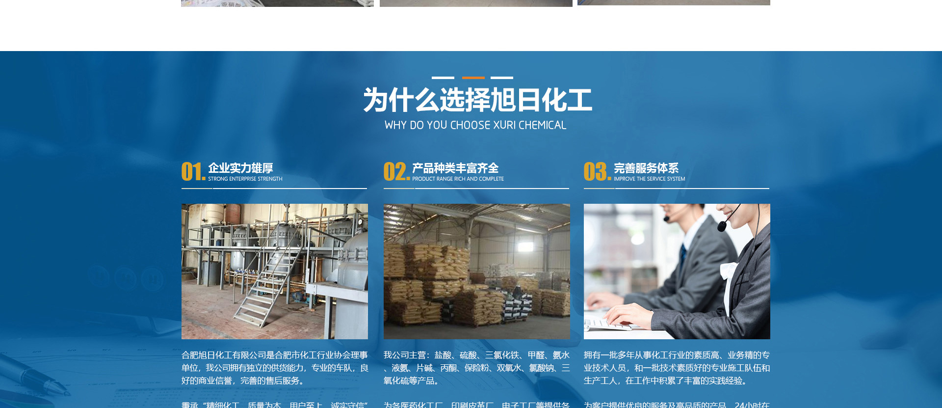 合肥旭日化工有限公司是合肥市化工行業(yè)協(xié)會理事單位,該公司擁有獨立的供貨能力,專業(yè)的車隊,良好的商業(yè)信譽,完善的售后服務(wù)。秉承“精細化工、質(zhì)量為本、用戶至上、誠實守信”的企業(yè)理念。從事各類化工溶劑和原料的國內(nèi)貿(mào)易;為各醫(yī)1藥化工廠、印刷皮革廠、電子工廠等提供各種化工原料配套采購。目前,公司正朝著以貿(mào)易為基礎(chǔ)、以實業(yè)為依托,全球采購、全國銷售,內(nèi)外貿(mào)一體化,上下游一體化,具有綜合增值能力和復(fù)合競爭能力化工原料供應(yīng)商。本公司主要經(jīng)營的產(chǎn)品有:鹽酸、硫酸、三氯化鐵、甲醛、氨水、液氨、片堿等。合肥旭日化工有限公司為客戶提供優(yōu)良的服務(wù)及高品質(zhì)的產(chǎn)品,本公司經(jīng)銷的各種產(chǎn)品不僅在安徽地區(qū)深受用戶好評,而且具有很高的市場占有率,產(chǎn)品行銷全國各地區(qū)。
